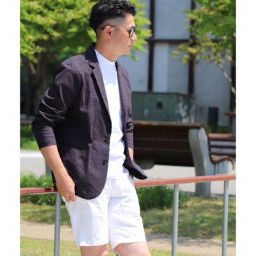 ストレッチ素材のピンストライプ柄生地を使用。オンにもオフにも使える着心地の良いジャケット。
