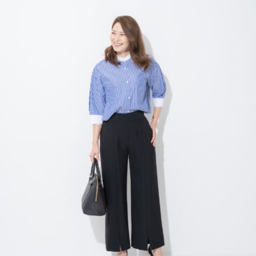 ハイウエストボトムスとも相性抜群のショート丈でスタイルアップ効果あり。