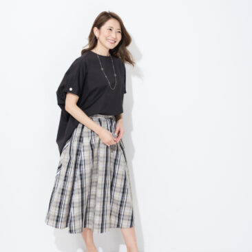 後ろ下がりのヘムがこなれた印象に。