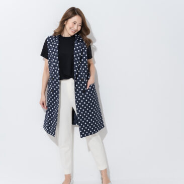 優れた撥水性、防汚加工、UVケアなど、ナノテクノロジーを駆使した機能性素材を使用したノーカラーのジレ。別売りのパンツとセットアップ可。