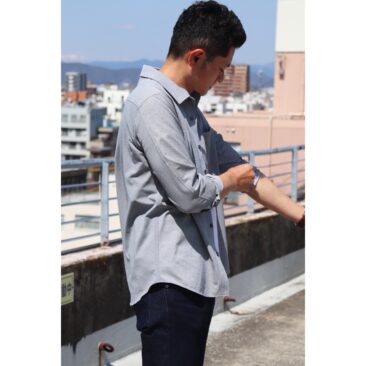 FUNCTIONシリーズのシャツ。後身頃と袖の一部を伸縮性のある生地に切り替える事で驚くほど快適な着心地です。メンズ・レディース展開です。